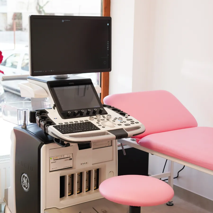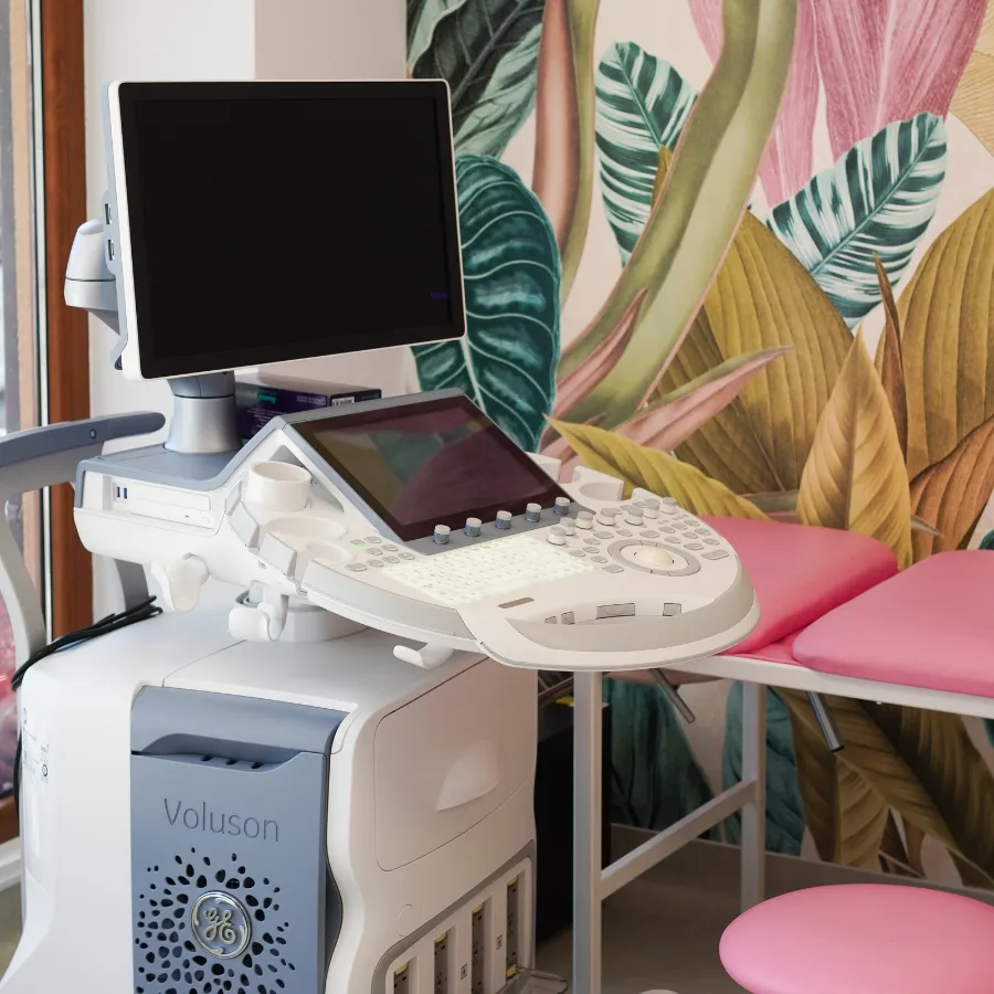 Pentru ecografiile ginecologice și screening sarcină (ultrasonografie obstetricală), clinica este dotată cu ecograful Voluson E8, vârful gamei de Obstetrică-Ginecologie de la General Electric. Acesta oferă imagini de o claritate excepțională, esențiale pentru efectuarea morfologiilor fetale și depistarea riscului de anomalii.